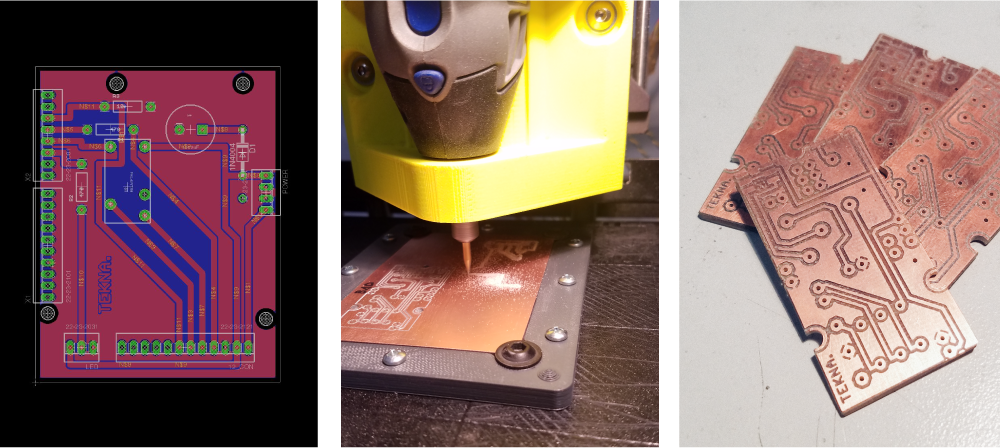 Through the process, we found a particularly resourceful way to control the display’s lighting/charging elements—turning a former 3D printer into a CNC router so we could develop custom circuit boards in-house, saving us substantial time. Check out the method described above, below: